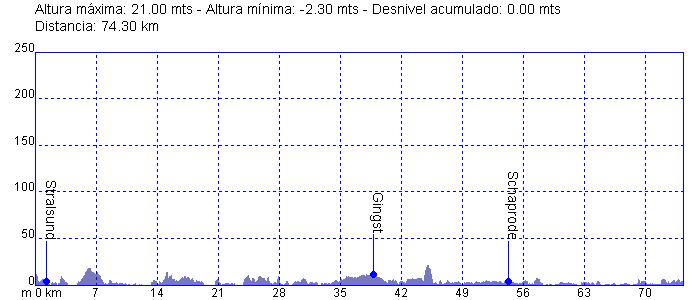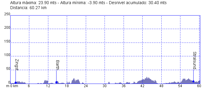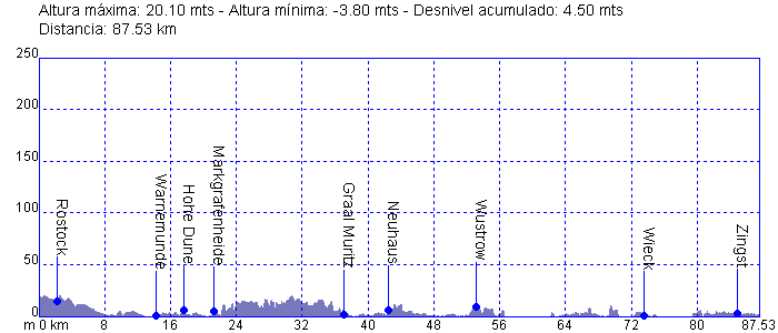 Llegamos a Graal-Müritz, y a partir de allí seguimos paralelos a la playa adentrándonos en la península de Zingst. A partir de Wustrow cruzamos a la costa Sur de la península, donde rodamos por una zona de albufera, y finalmente volvemos a la costa Norte a la altura de Prerow, donde ya sin dejar la orilla del mar llegaremos a Zingst.