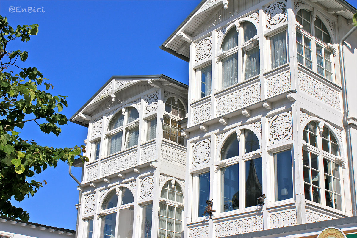 Y ya al final de la larguísima playa de Prora, terminamos la etapa en Binz. Un precioso pueblo turístico donde destacan las casas con elaborados porches y balcones de madera pintados en blanco.