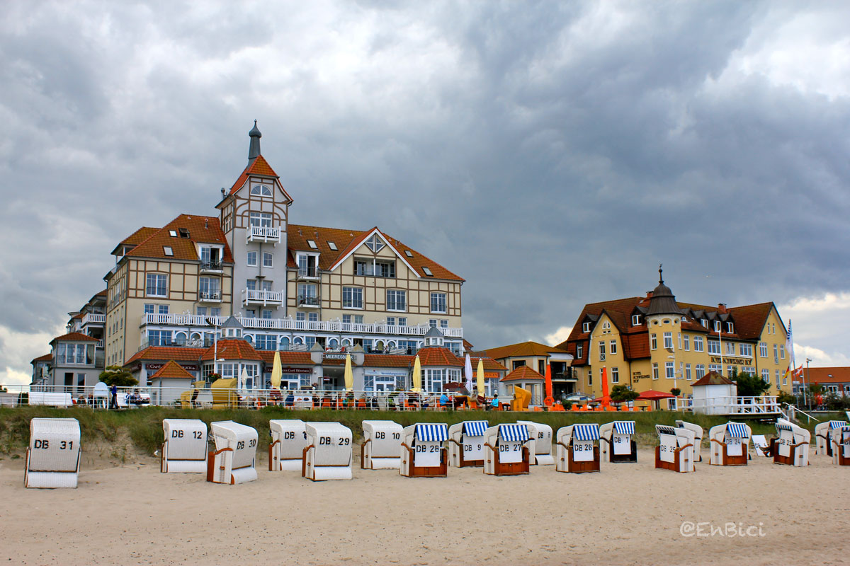 ... y como todo pueblo del Báltico que se precie, con su playa y sus "Korb", su muelle sobre el mar, sus hoteles balneario de estilo neoclásico, un montón de bares y terrazas, y el puesto de vigilancia de la cruz roja mas curioso que hemos visto.