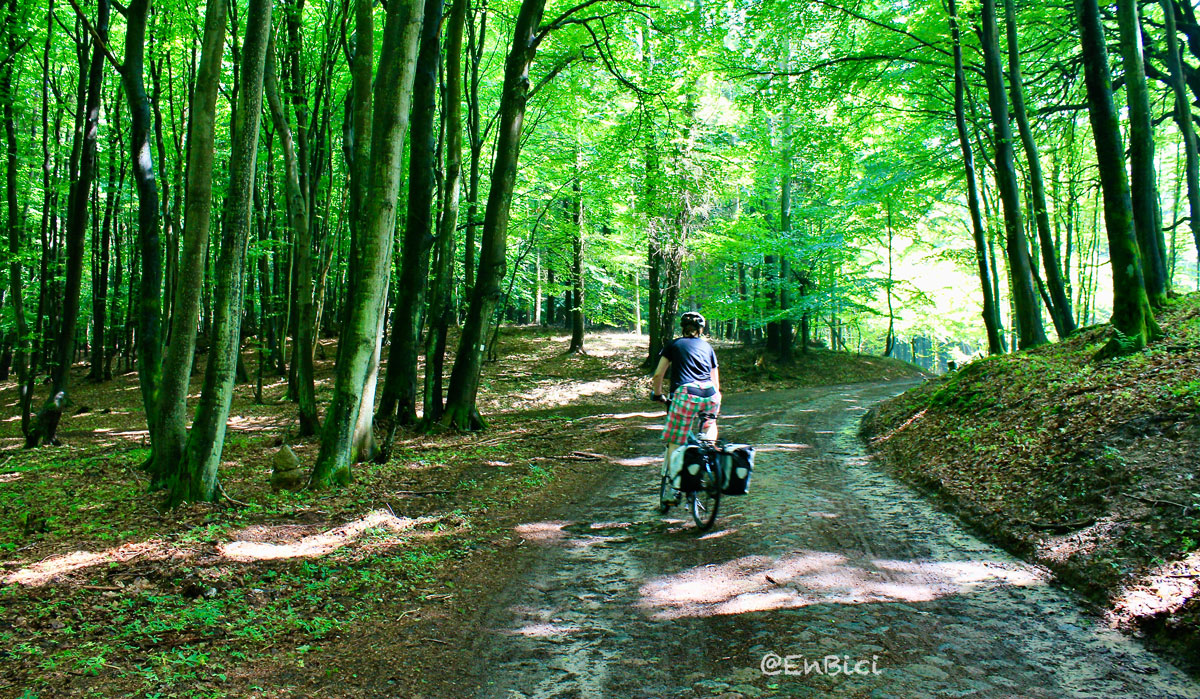 En otras zonas el camino prácticamente se pierde entre los sembrados, pero los peores tramos de todos son los adoquinados: hechos con unos pedruscos totalmente irregulares sobre los que es imposible pedalear. "Pling blong crick plaff bing blof crack" ... después de cien metros ya estáis tu y la bici para el arrastre. Nosotros un par de veces nos bajamos y empujamos a pie durante un rato solo para descansar de ese desquiciante traqueteo.