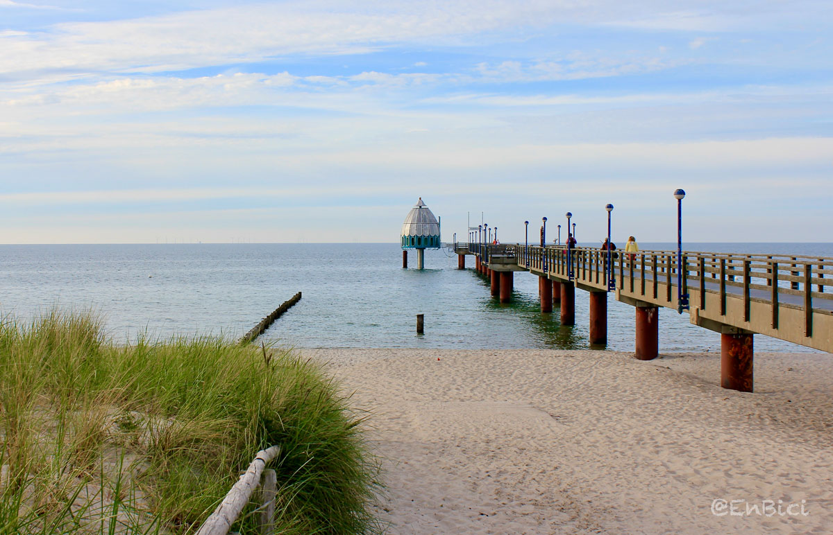 Zingst es un pueblo pequeño, pero con su playa y su "Seebrücke" (vamos, como todos), y además una calle principal muy animada con restaurantes y terrazas. Un buen sitio para hacer noche.