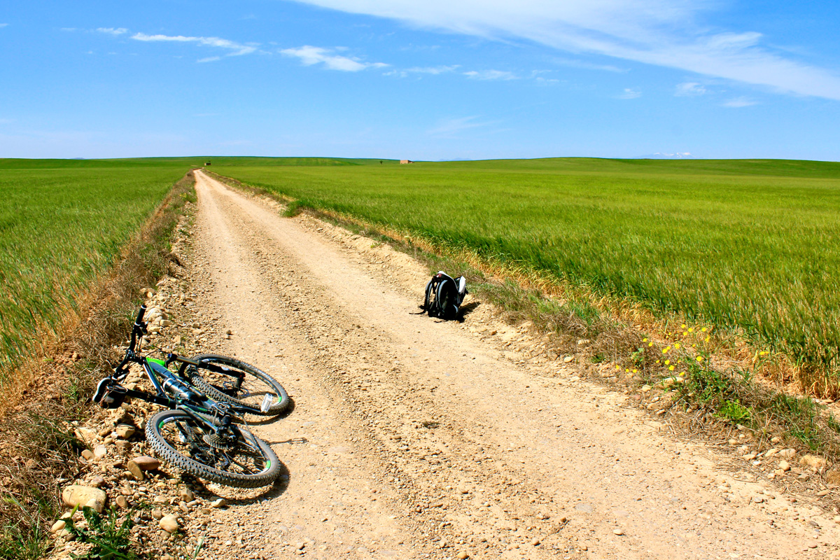 Alejándonos del cauce del Ebro hay muchas zonas semidesérticas con caminos rurales para aburrir